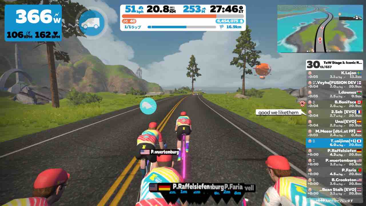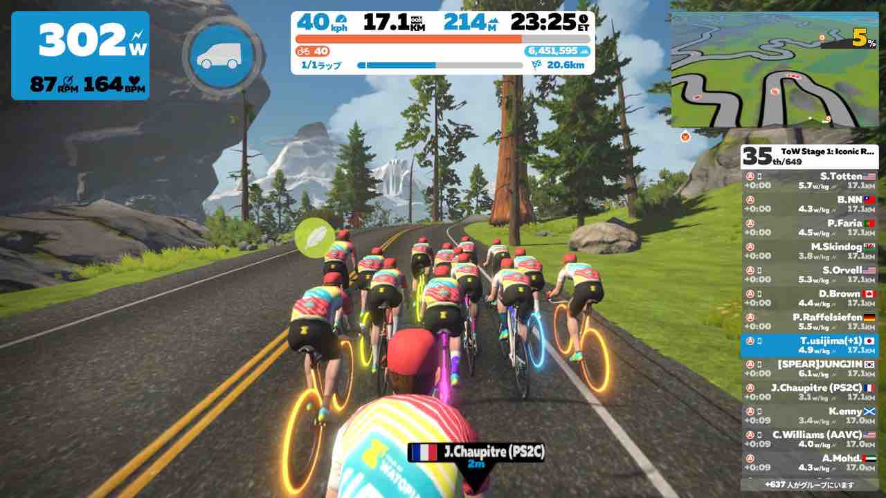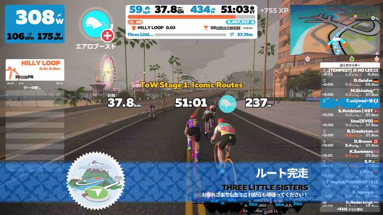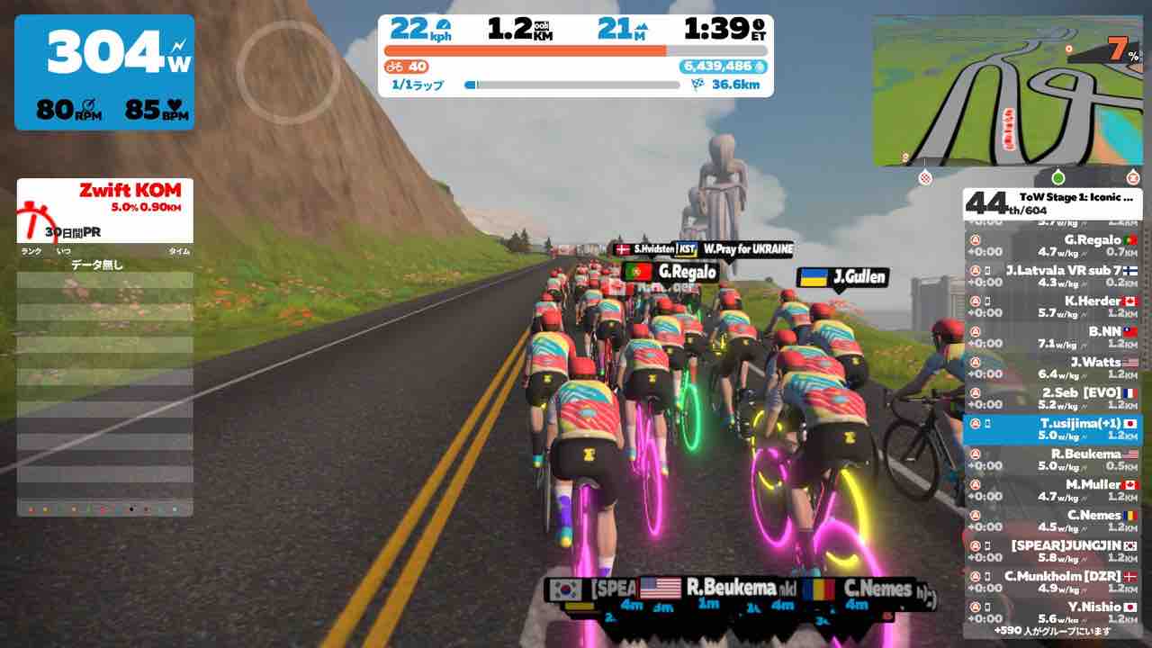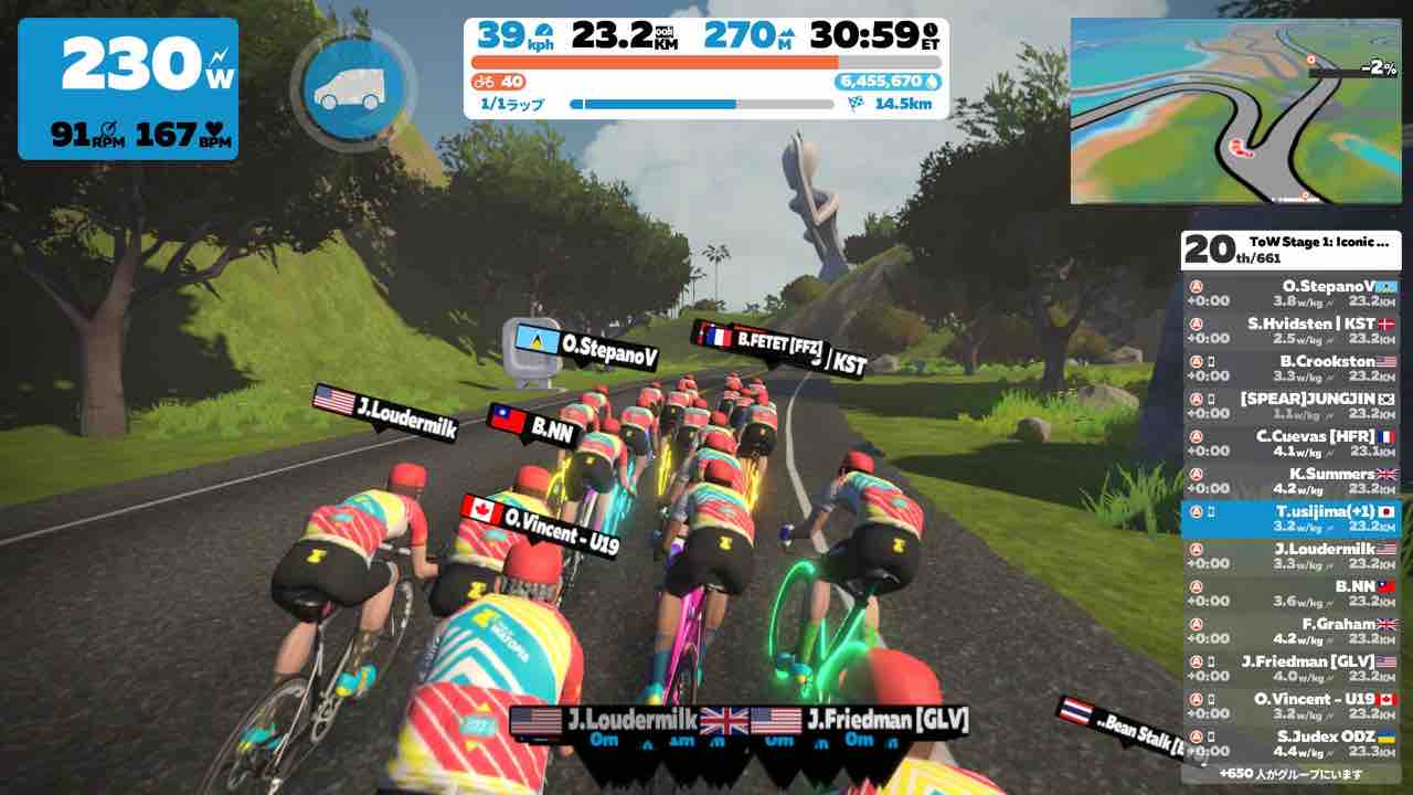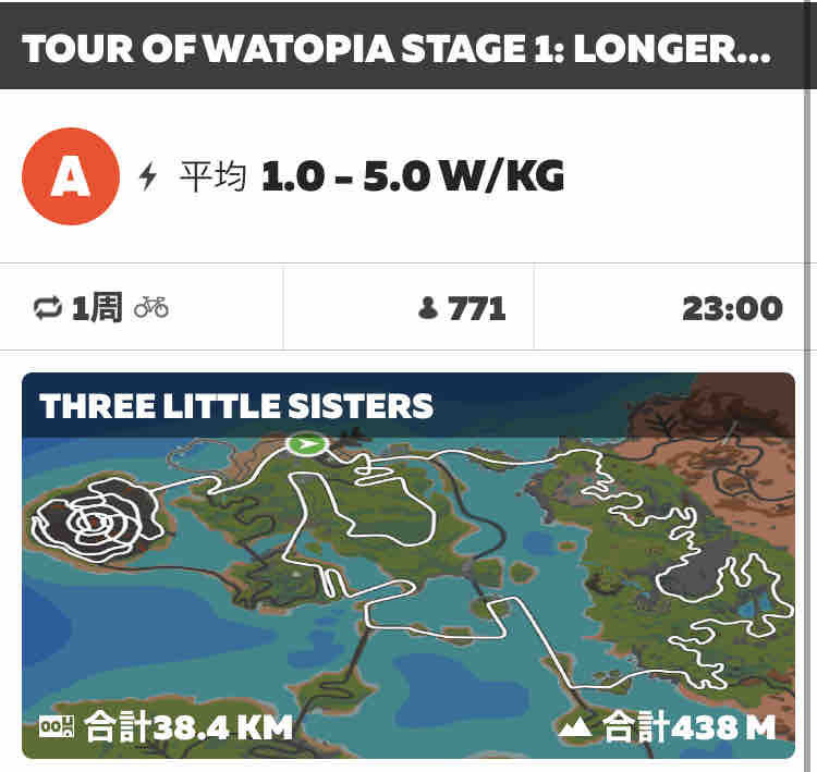 ZwiftにてTour of Watopia Stage 1にエントリーしました。