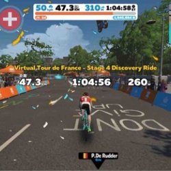 ZwiftにてVirtual Tour de France - Open - Stage 4 Discovery Rideを走りました。ステージ3にエントリーしたつもりがステージ4でした。両ステージ走るつもりなら前後するだけと割り切る。オープンクラス230人くらいなので上位を狙ってみよう。距離的に1時間踏みっぱなしかな ...