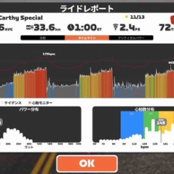 Zwiftにて The McCarthy Special のワークアウトをやりました。100%→112%→125%、各3分×3セットのメニューになります。一見するとやれそうに思えますが・・実際のところは、かなりキツいメニューです。とりあえずやってみよう↓300w→340wの3分で一気にキツくなる。1セット ...