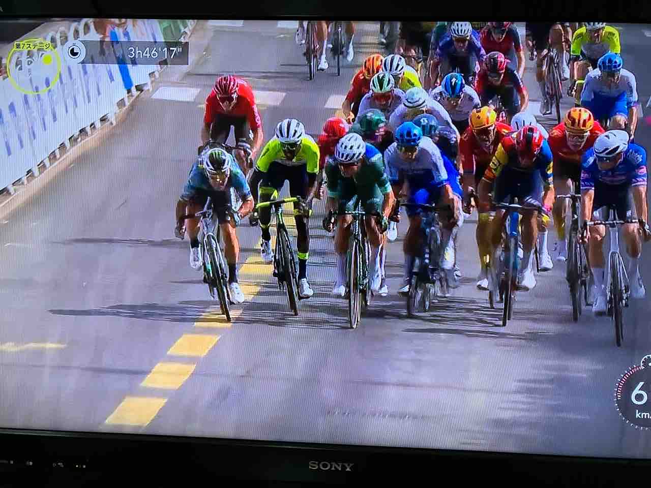 平坦ステージのリラックスした空気から、残り30kmになり激しくなってきました↓