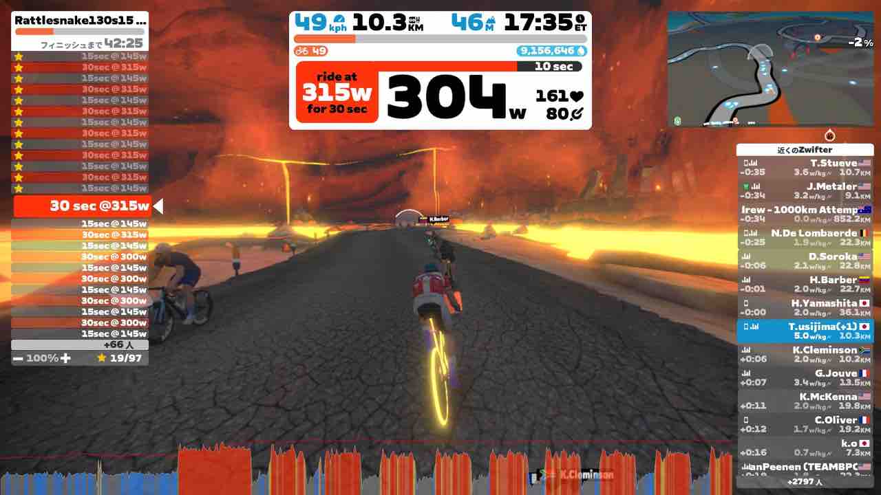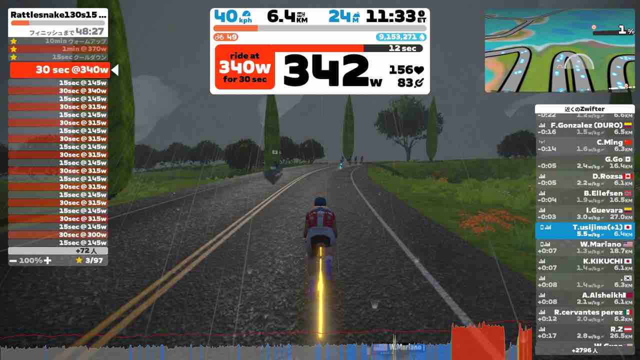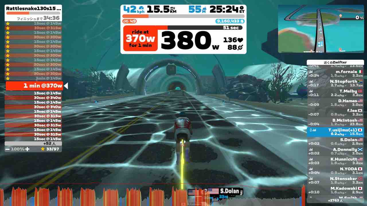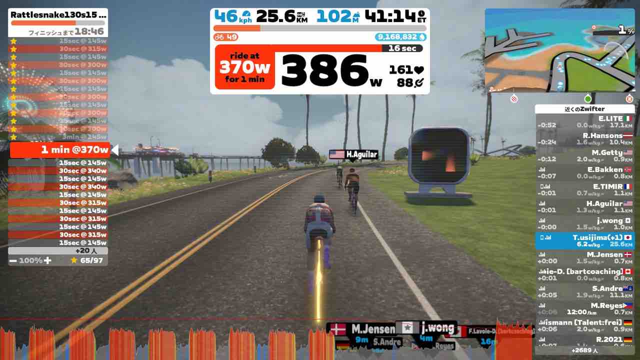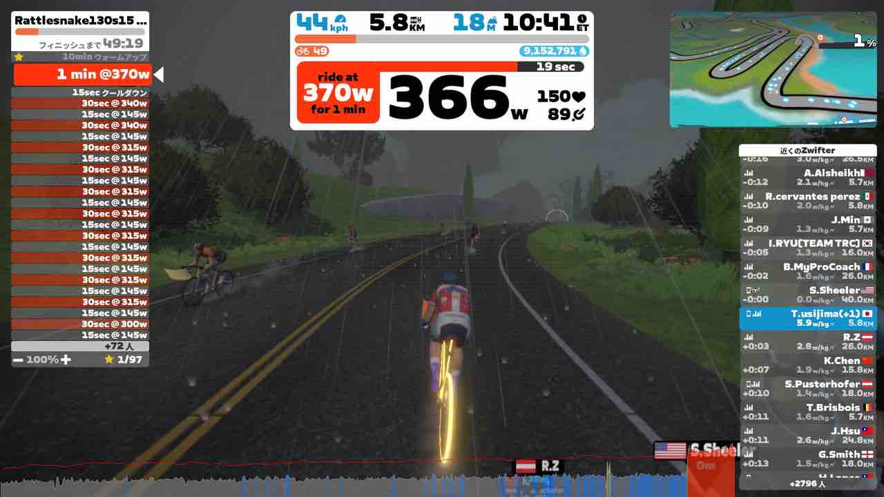 Zwiftにて、Rattlesnake(ラトルスネーク)のワークアウトをやりました。