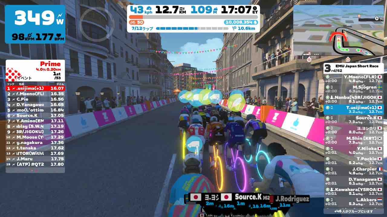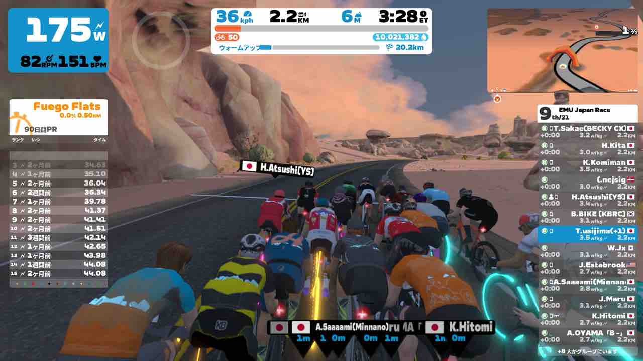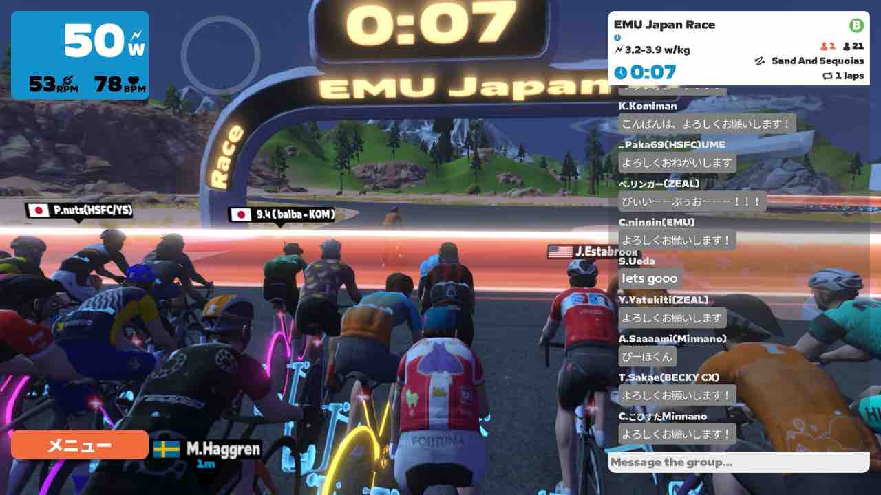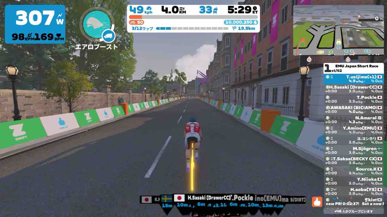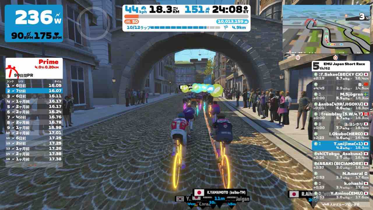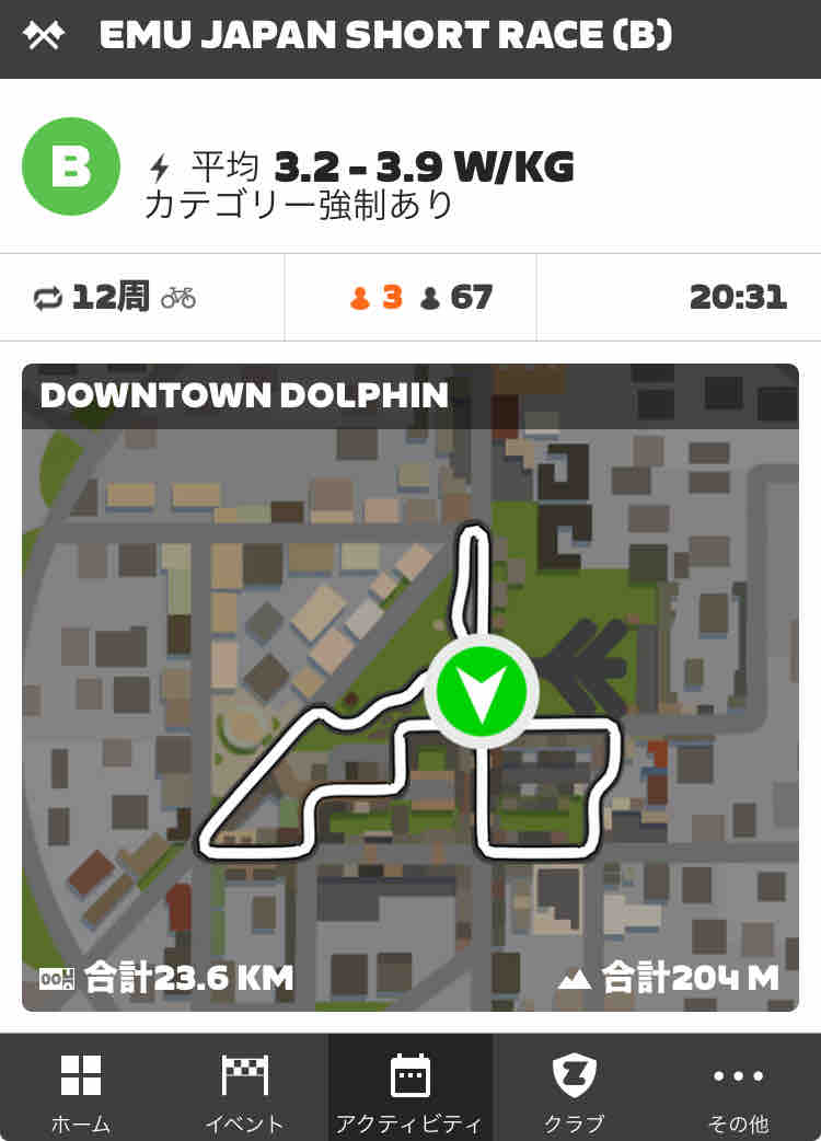 Zwiftにて、EMU Japan Short Race (B)にエントリーしました。