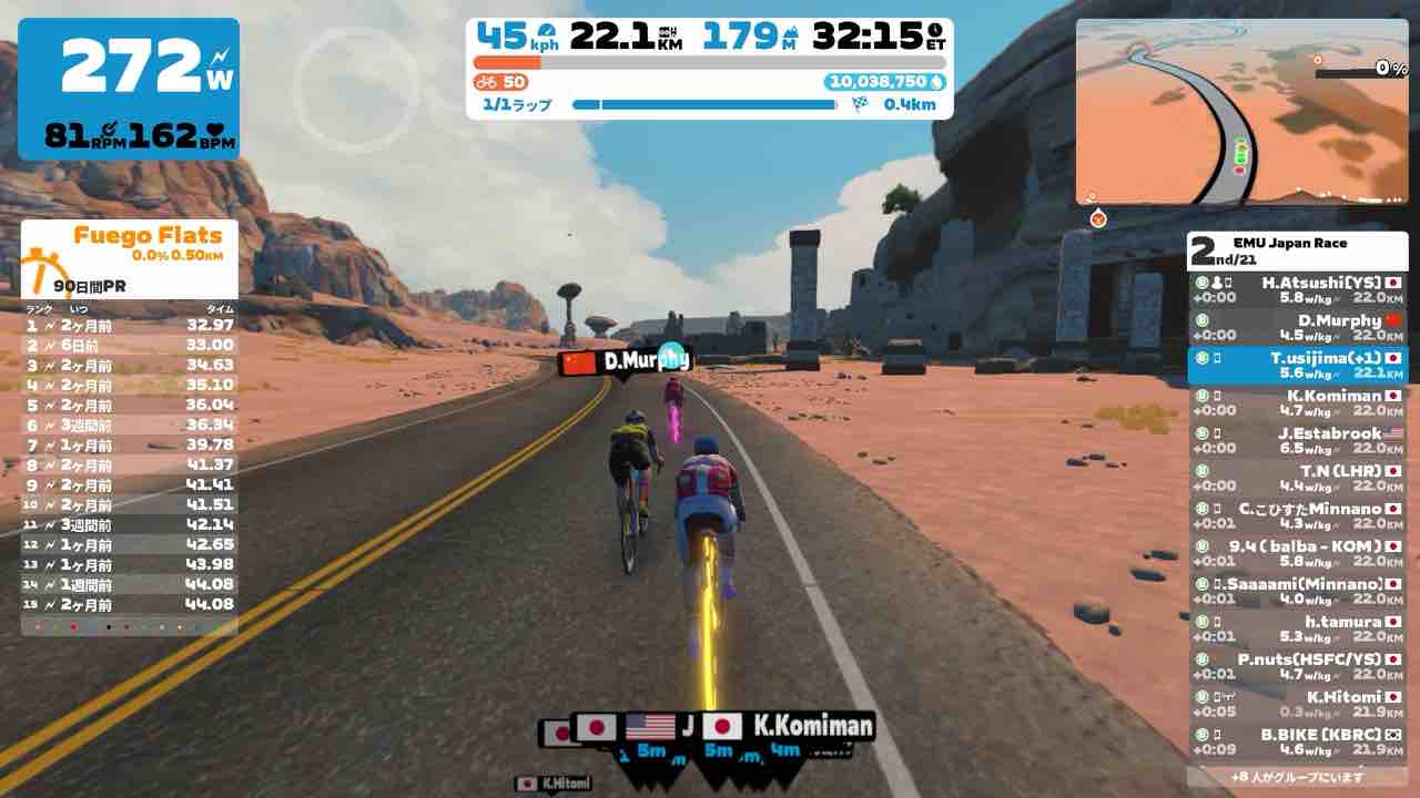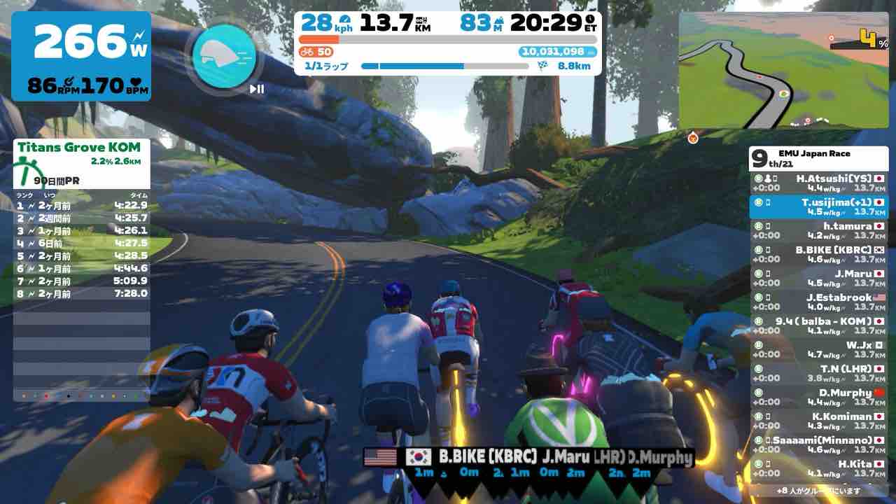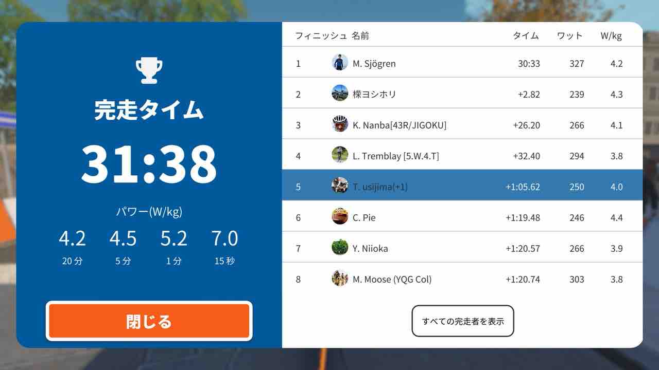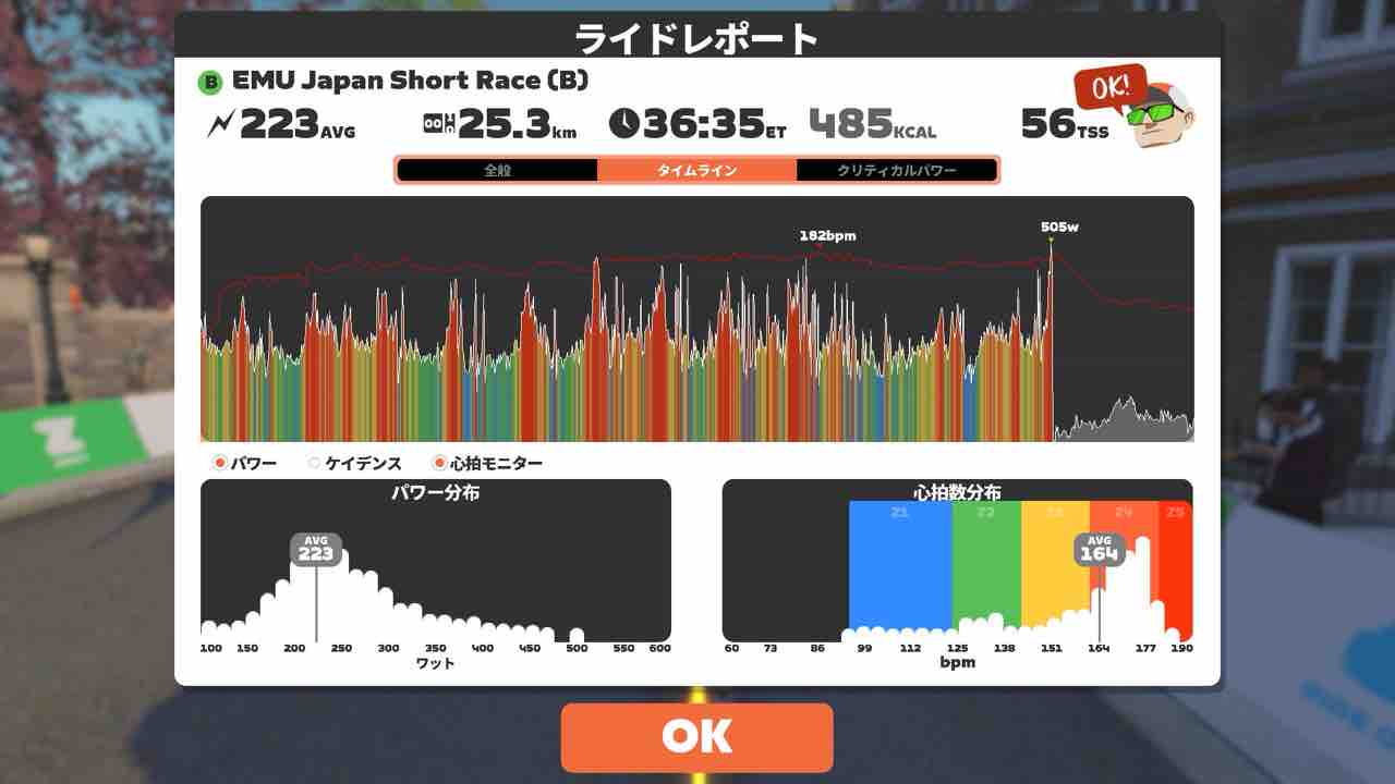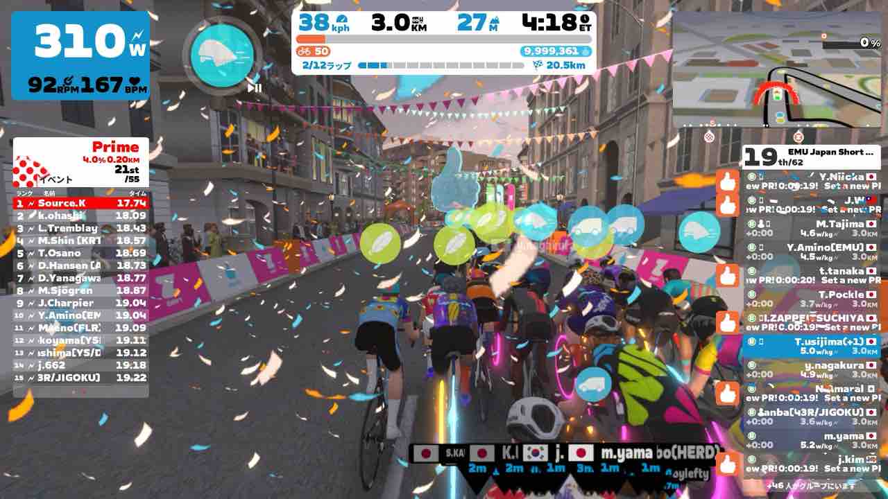 Zwiftにて、EMU Japan Short Race (B)にエントリーしました。