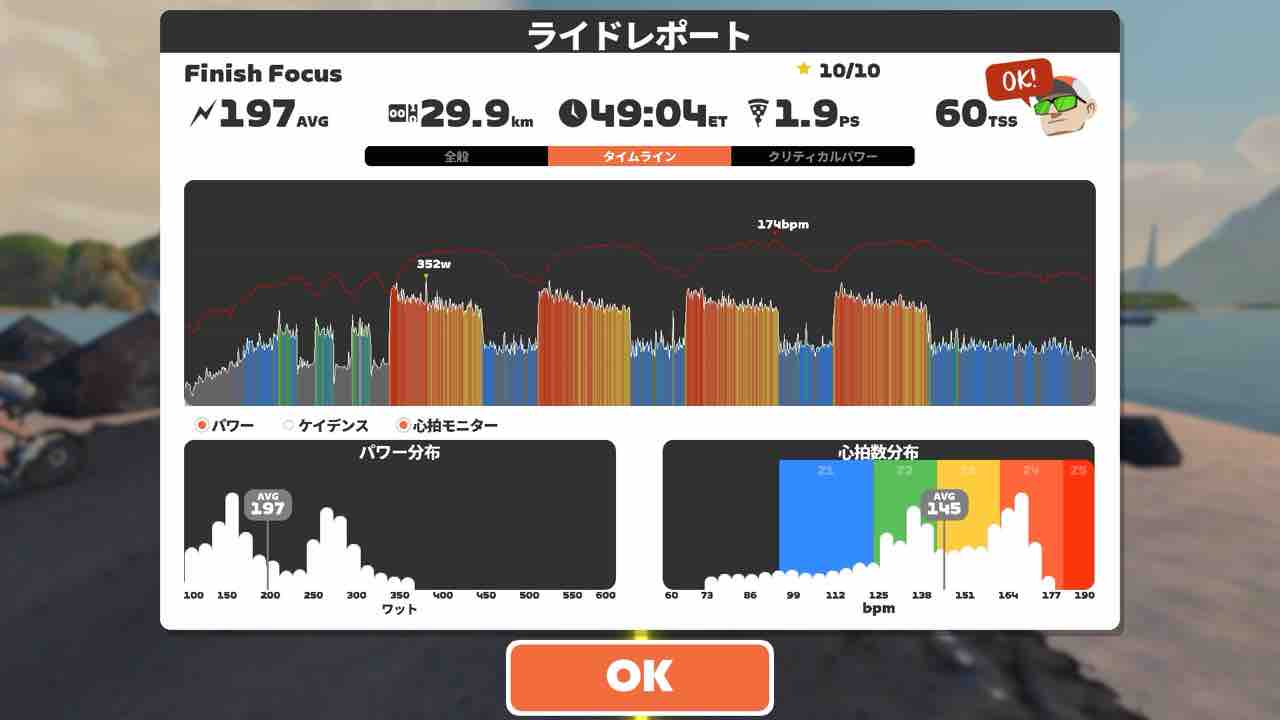 ケイデンス85rpm指定が地味にキツい。