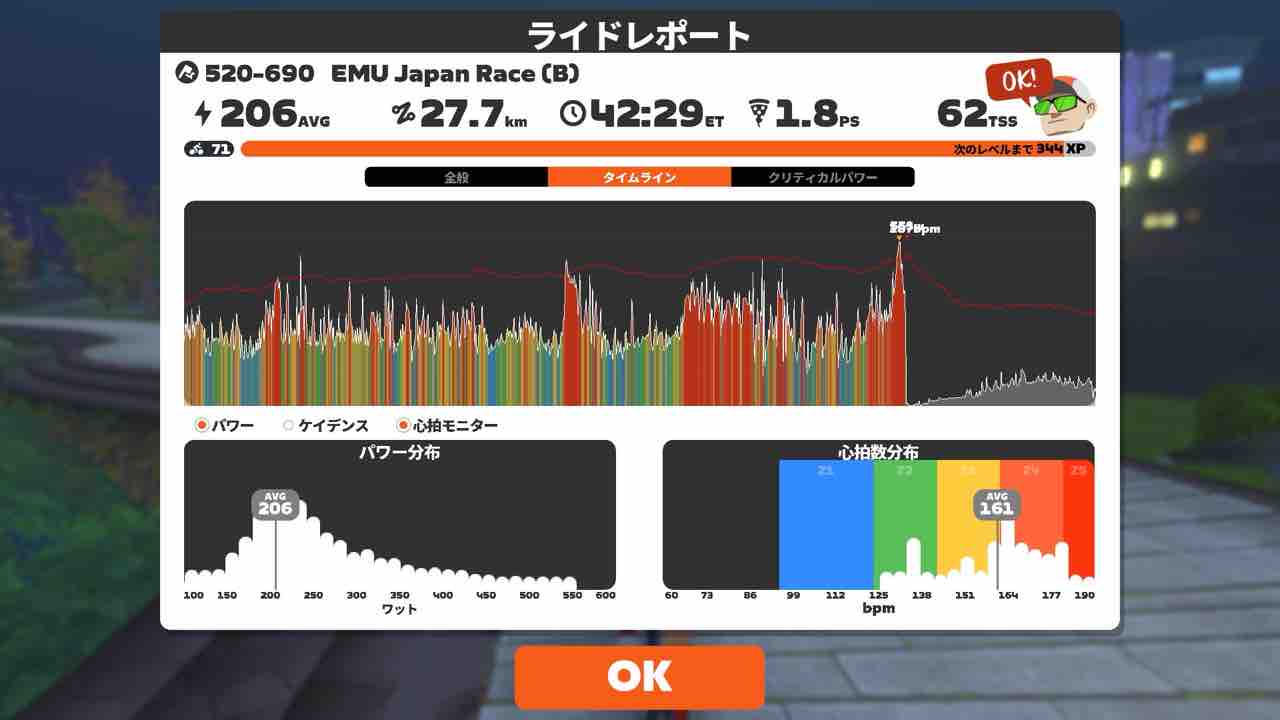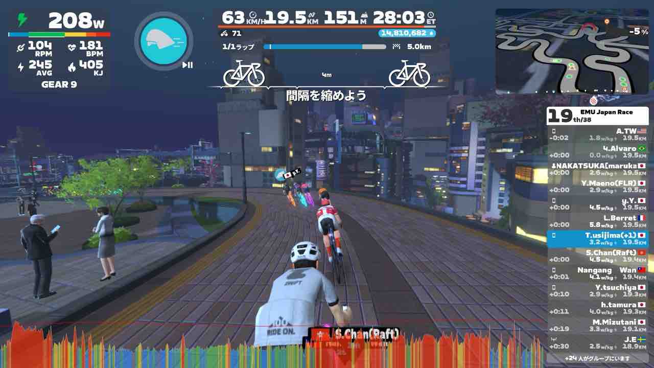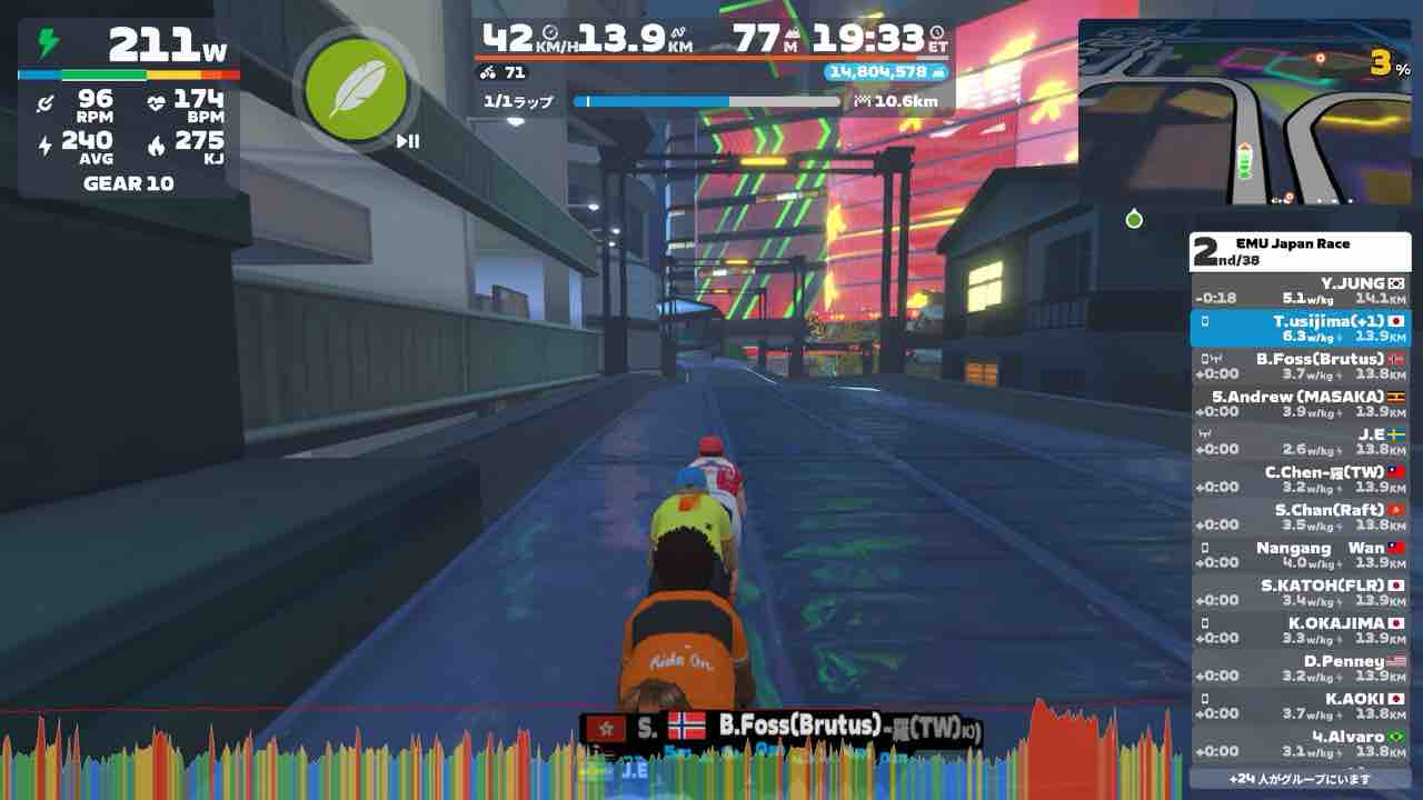 Zwiftにて、EMU Japan Race (B) にエントリーしました。