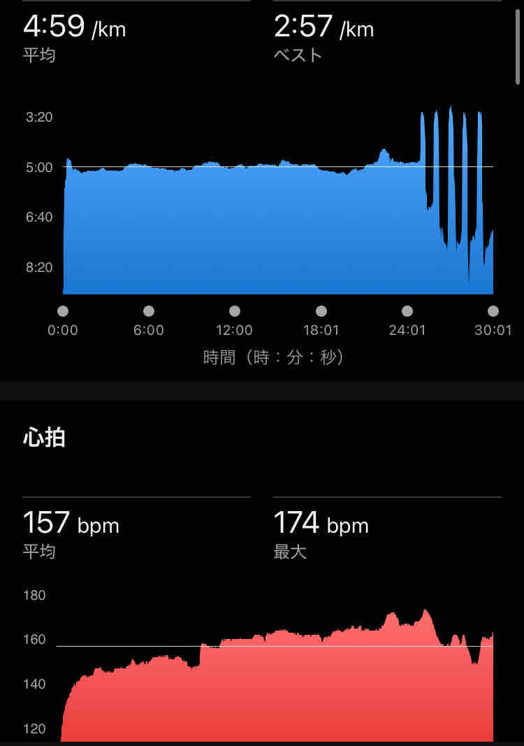 合計6km、30分で終わるので取り組み易い。