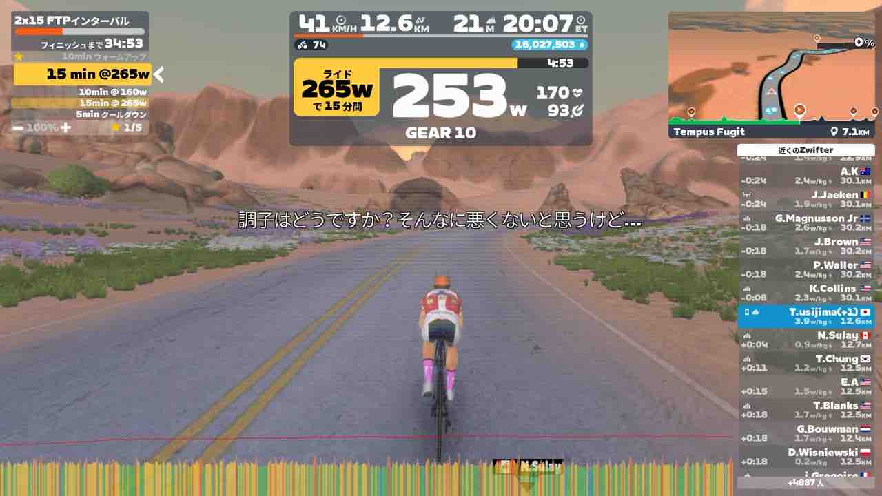 チームメンバーのスガワラさんは、通勤で2×20分やっているとか・・実走でやれるものなのか?