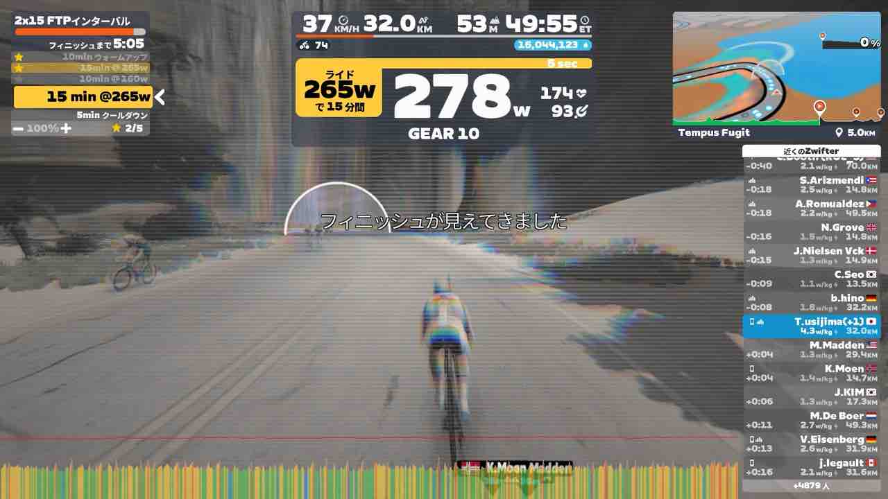 自分で、ツインテールみたいなインターバルをやりましょう。