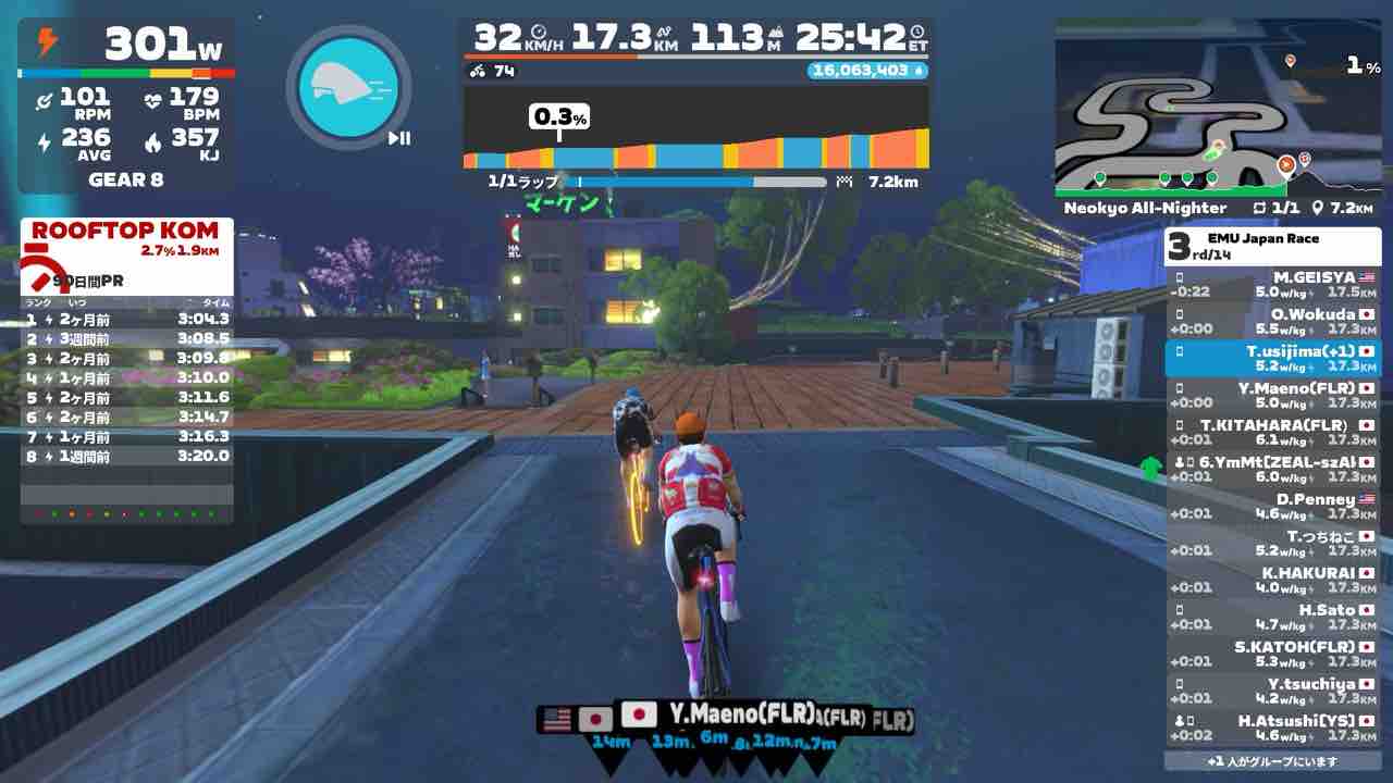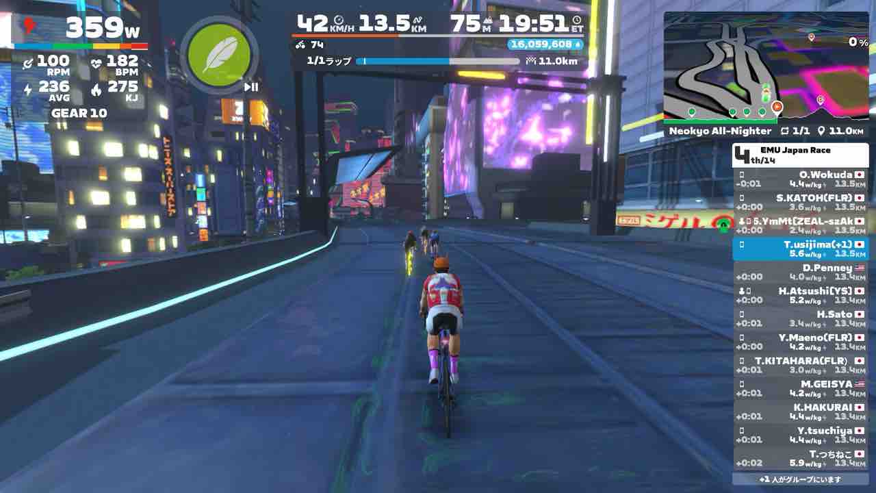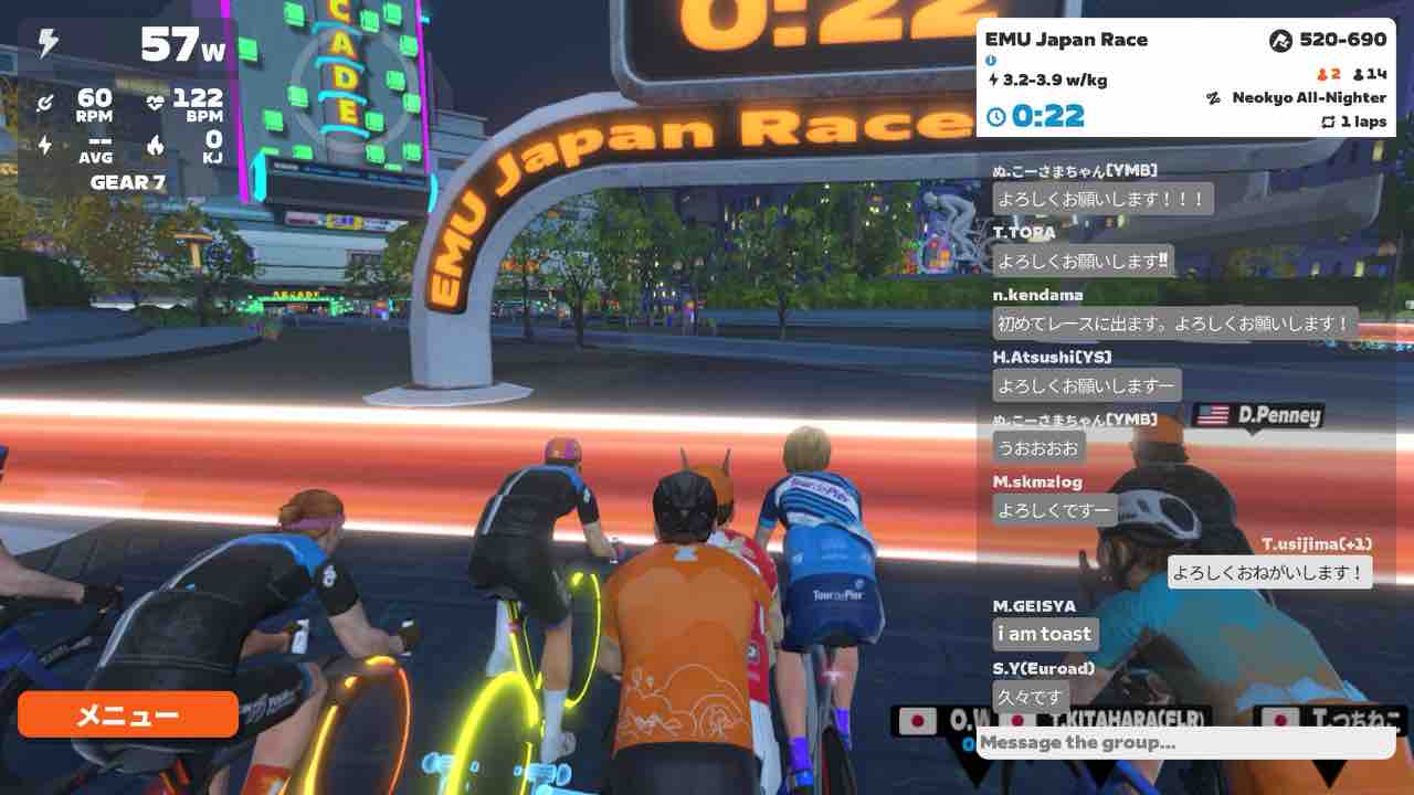 Zwiftにて、EMU Japan Race (B)にエントリーしました。