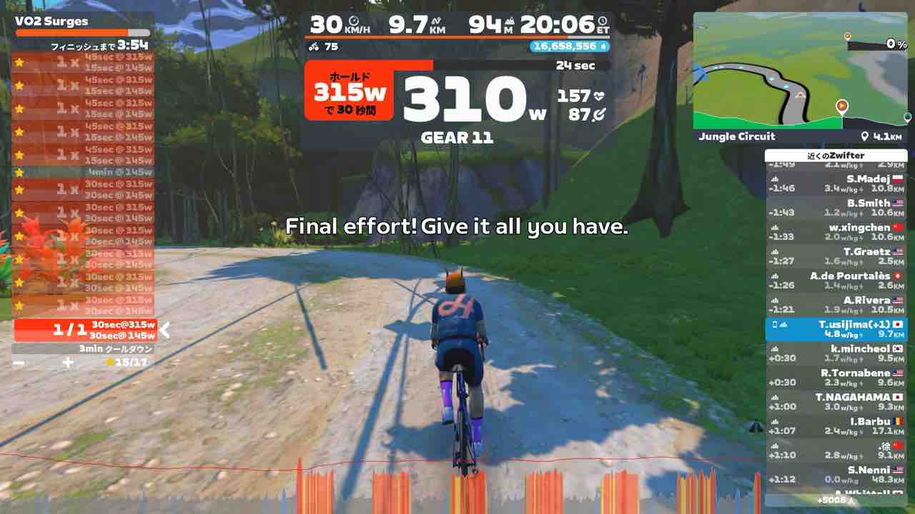 ショートインターバルの方が得意なので完遂出来ました。