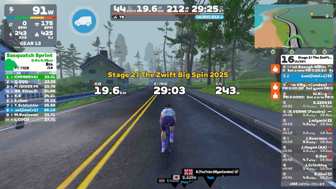 Zwiftにて、The Zwift Big Spin 2025 Stage 2 にエントリーしてみました。