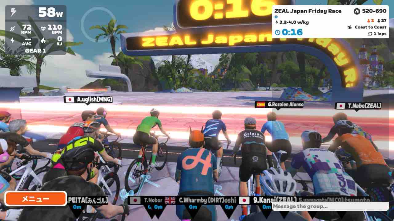 Zwiftにて、ZEAL Japan Friday Race (B) にエントリーしました。