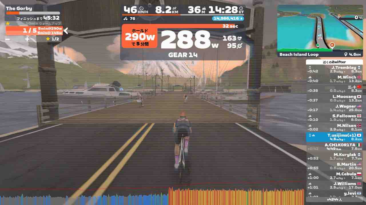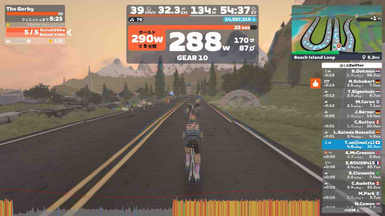 Zwiftにて、The Gorbyのワークアウトをやりました。
