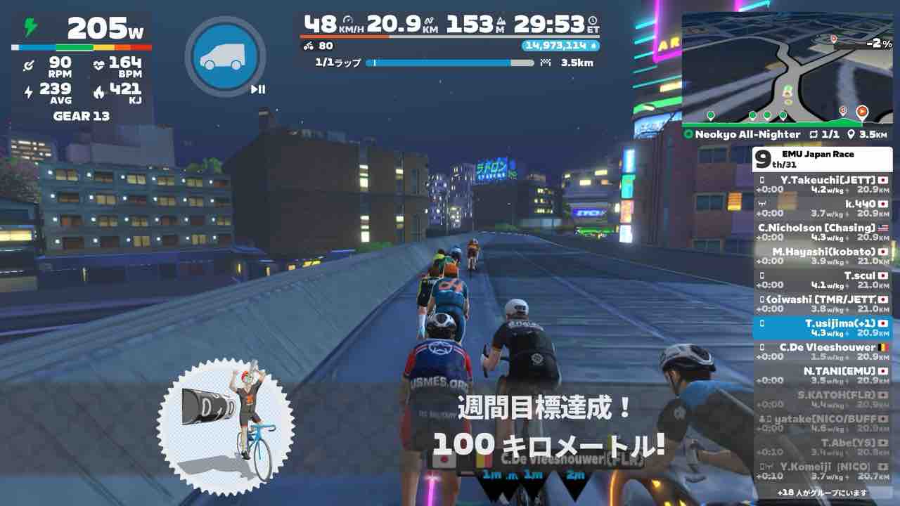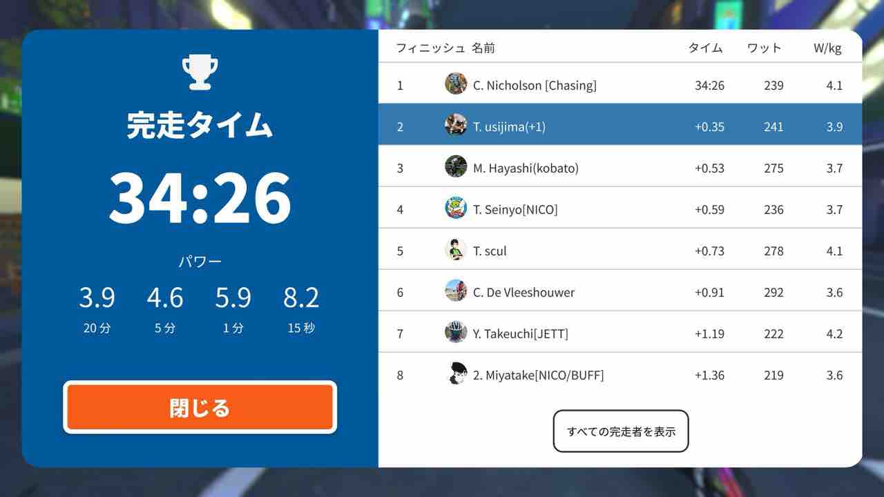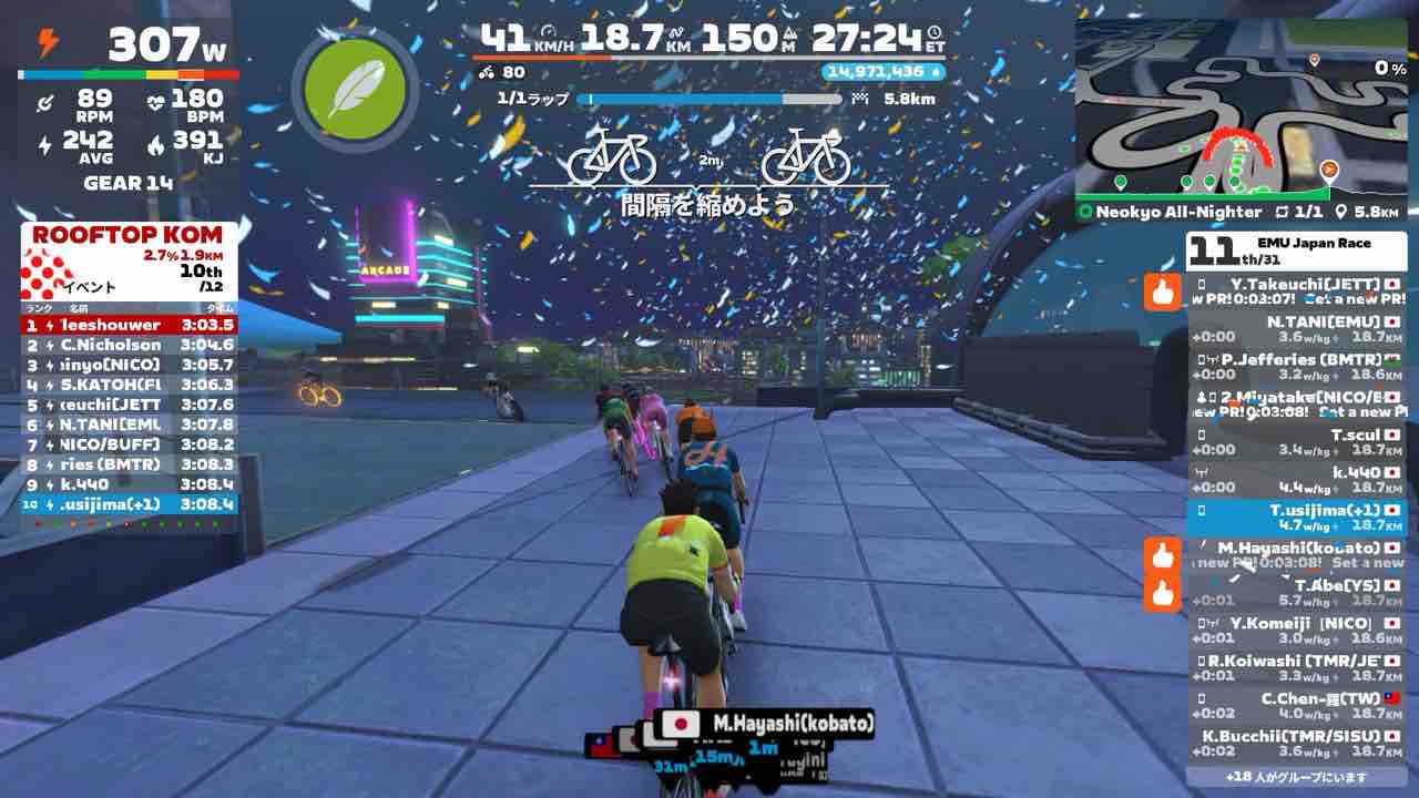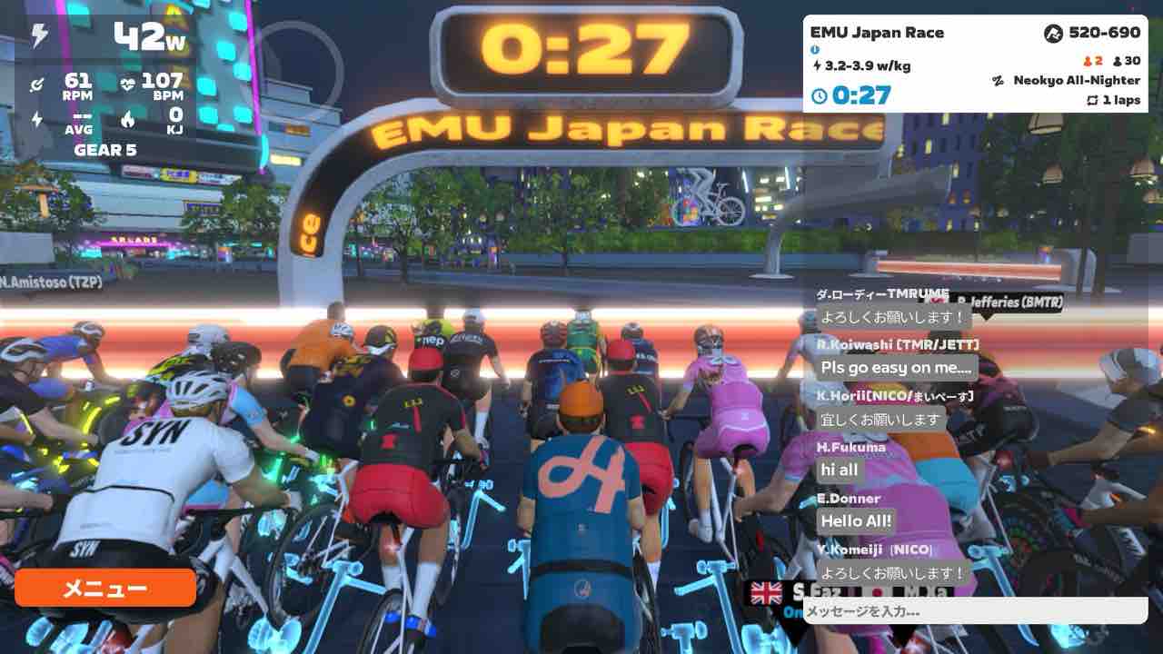 Zwiftにて、恒例のEMU Japan Race (B)にエントリーしました!