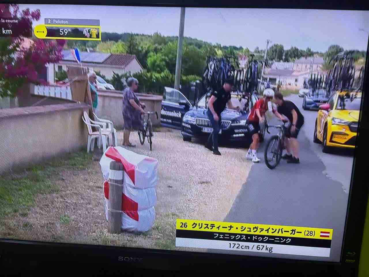 機材トラブルした選手が、バイクを観客のおばちゃんに預けていましたw