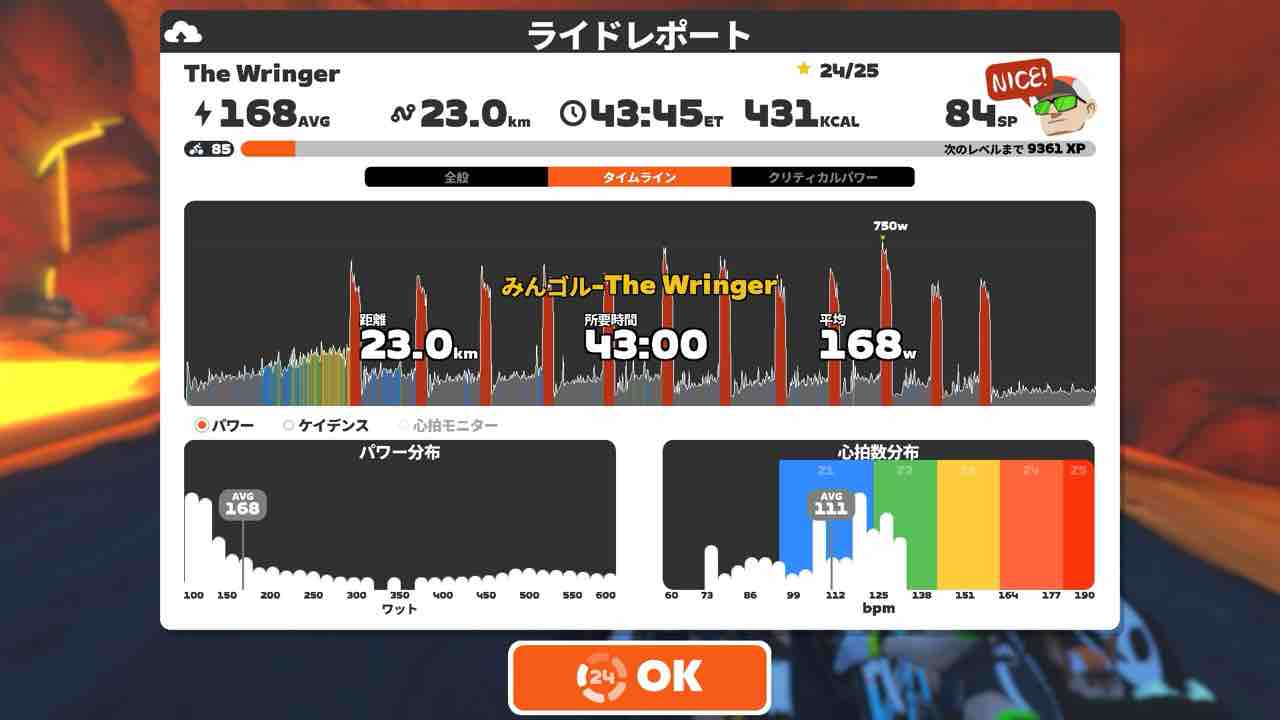 11.2w/kg 出力したら、上振れして☆落としてしまったw