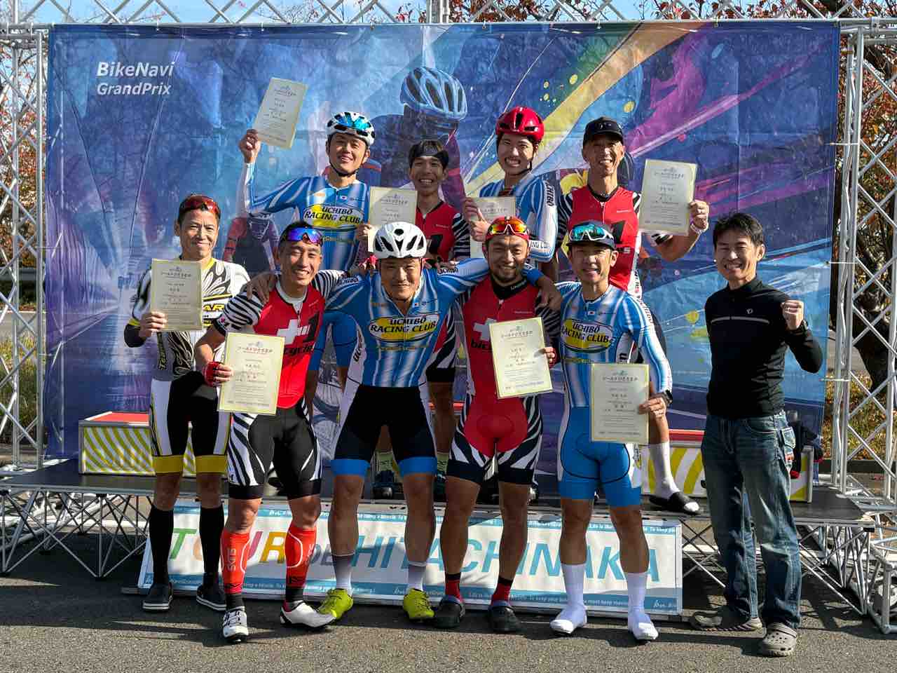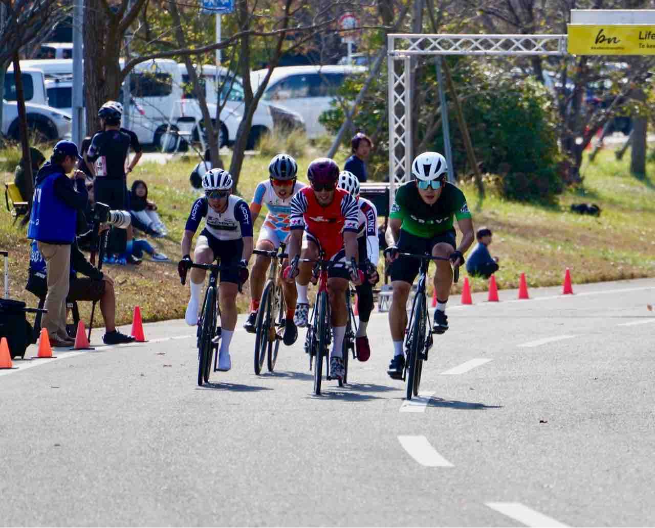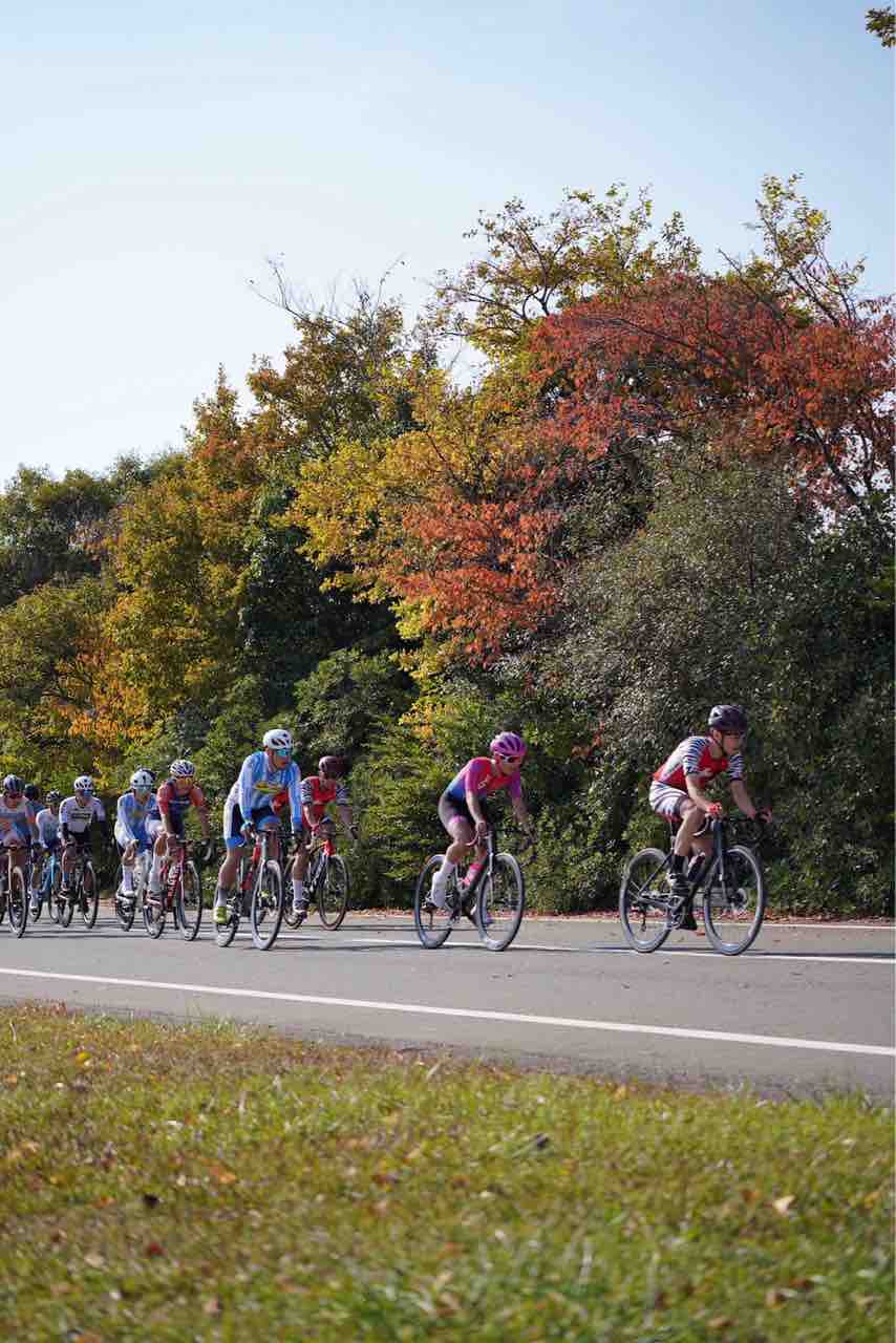 走りながら情報収集すると、逃げ集団にオーバー40、50カテゴリーの選手は入っていないのを確認する。