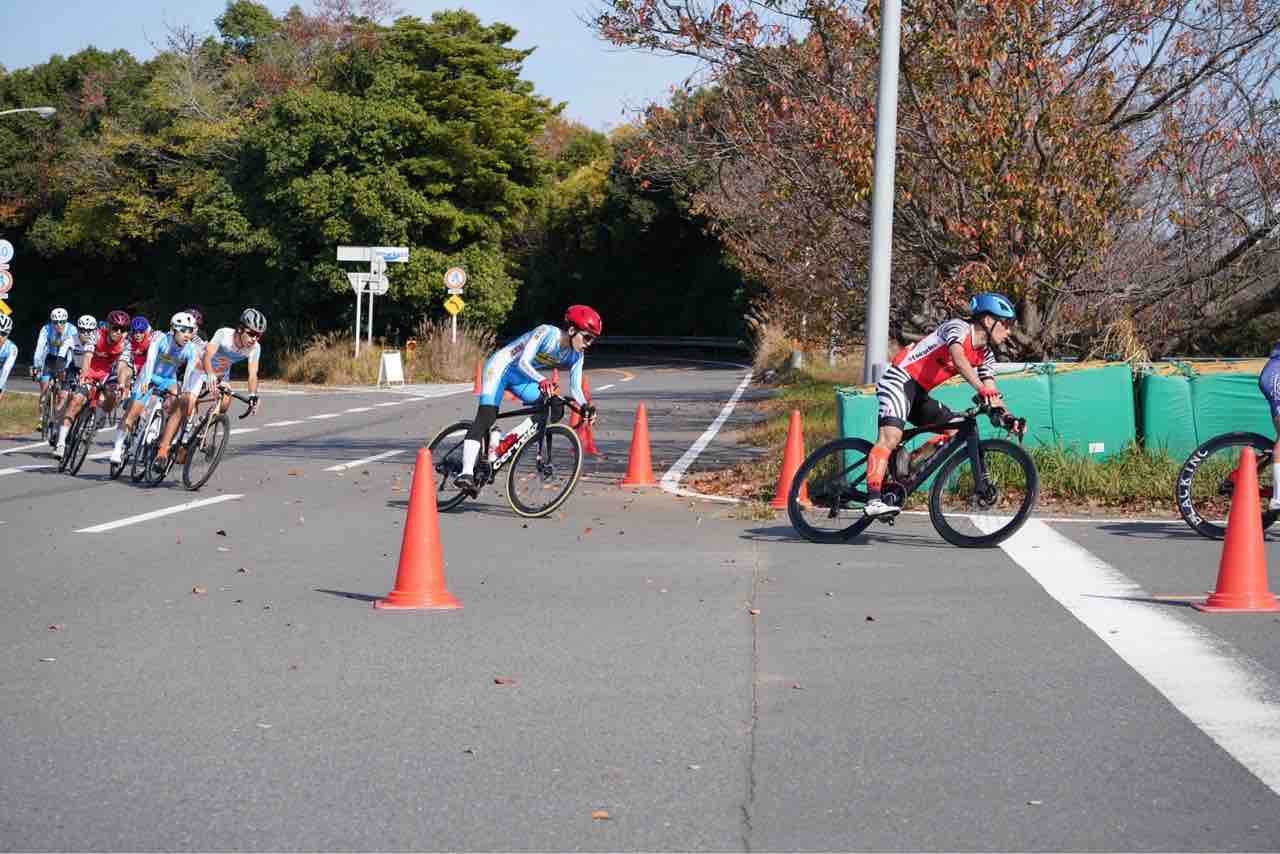 スガワラさんのアタックに、オープンカテゴリーの選手が追跡する展開へ。