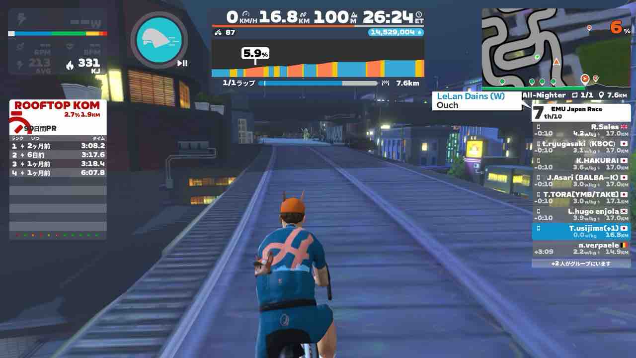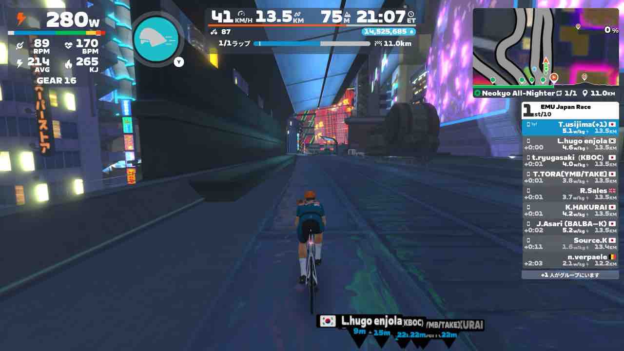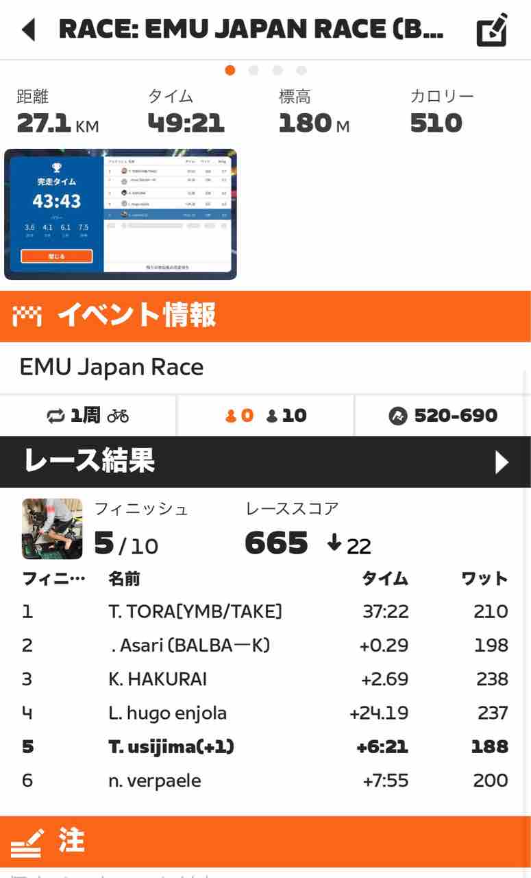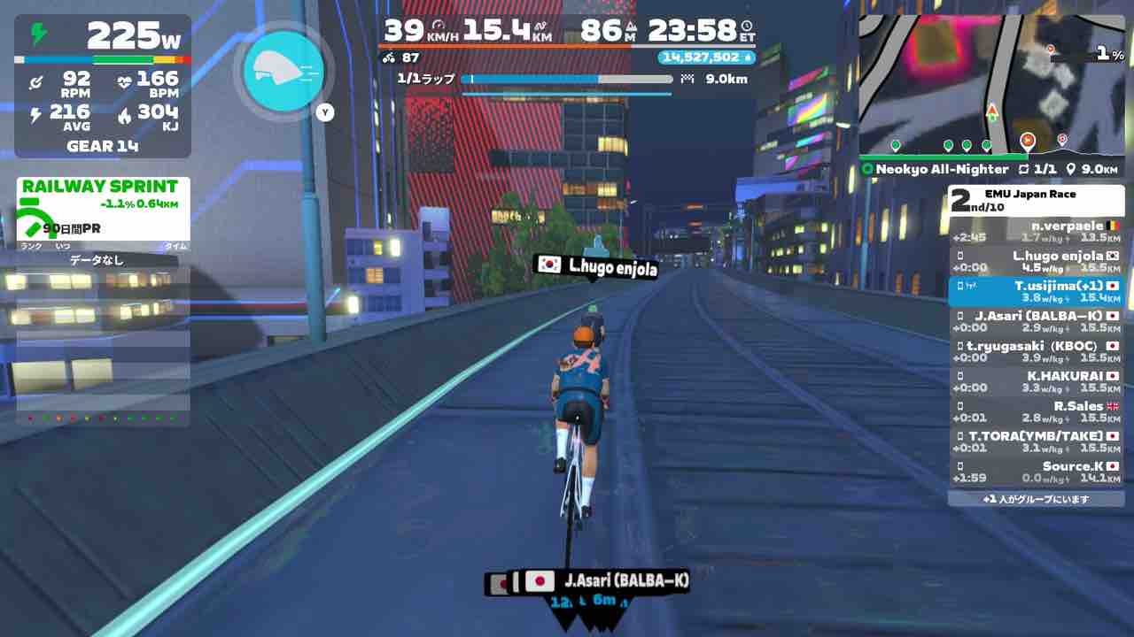Zwiftにて、EMU Japan Race (B)にエントリーしました!