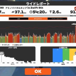 アミノバイタル®️カップ in Zwift 5thにエントリーしました。Bカテゴリーの参加人数は54人程です。毎回参加しているけどレベルは高く、完走するだけで精一杯の成績しか残せていません。 今回こそは上位狙えるだろうか?試走もして準備万端でスタートラインへ。見知った名 ...